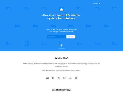 Alex is a simple & affordable system for hoteliers coming out in Q1 2016. Join the waiting list on our site and be between the first to start using it.