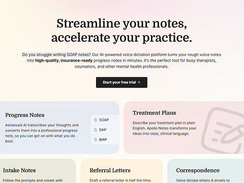 Generate therapy progress notes using your voice